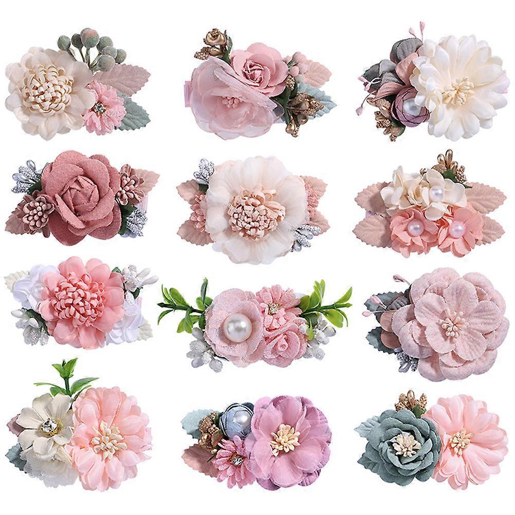 Hair Accessory Flower Barrette Layered Petals Design Elegant Charming Women Girls Party Wedding 12Pcs