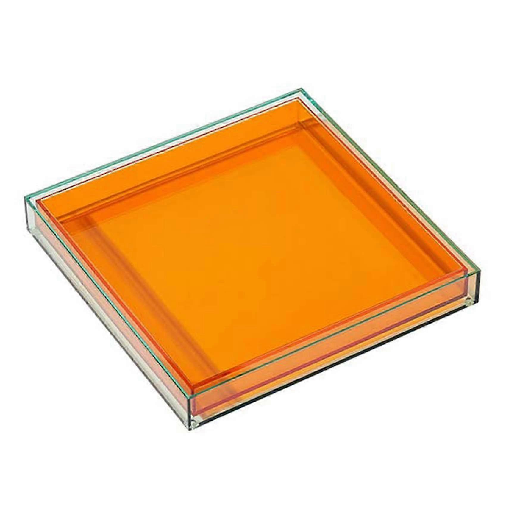 Nordic Decor Acrylic Serving Tray Clear Square Vase Tray Jewelry Water Cup Key Storage Decoration - Orange Edition 0724