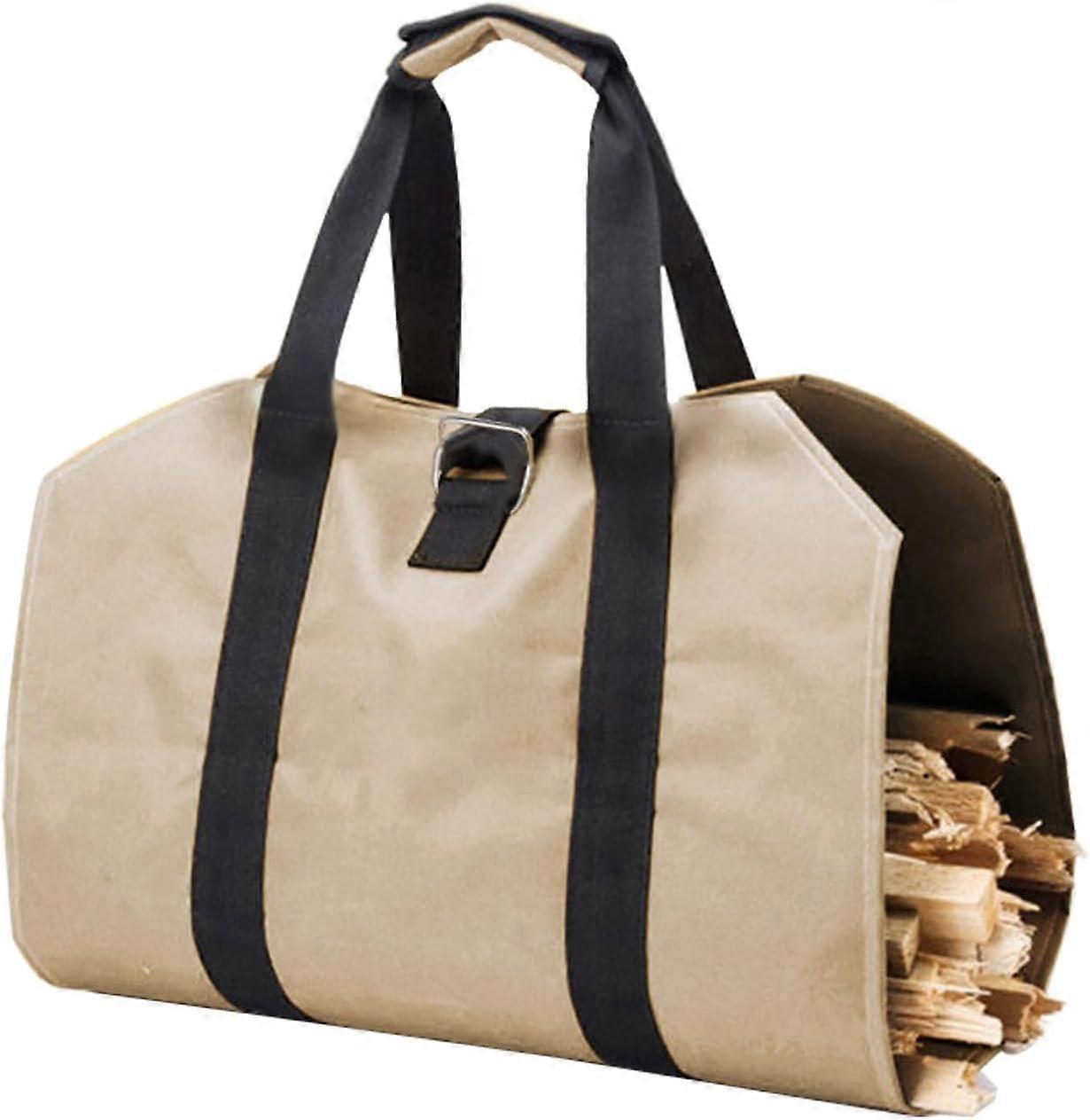 BBQ and Fireplaces 18.89 × 18 Inch Foldable Firewood Carrier Large Firewood Bag Waxed Canvas Firewood Carrier for Camping