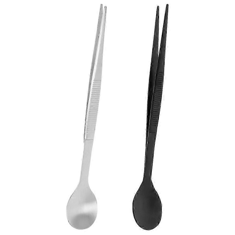 Chef Tweezers Tasting Spoon And Tongs For Home Cooks Cold Dish Plating Black 2Pcs