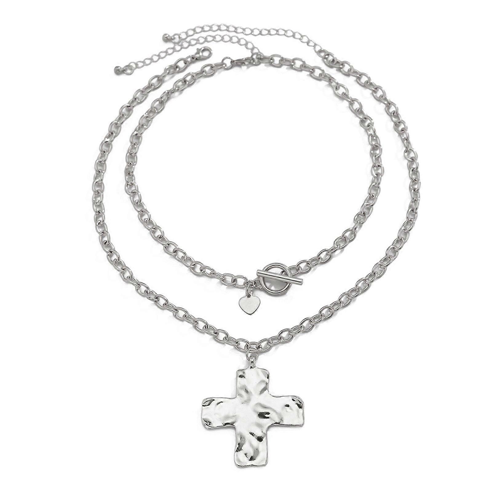 Crosses Pendant Necklace Chic Hammered Crosses Necklace Unique Neck Accessories for Fashion Enthusiasts