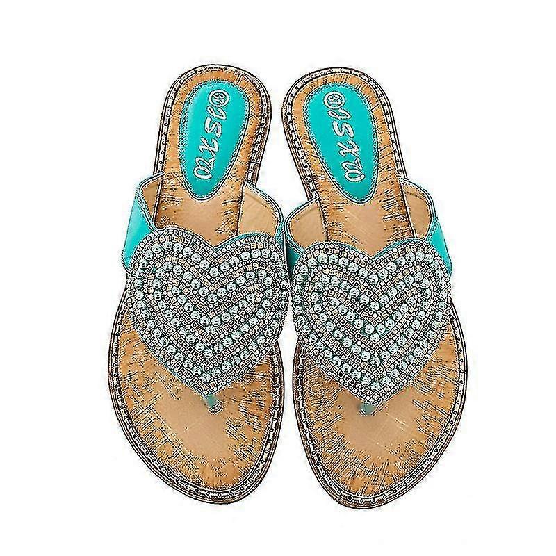 Sandals For Women Flat, Love Rhinestone Pearl Pinch Clip Toe Flip Flops Boho Casual Flat Slippers Beach Shoes