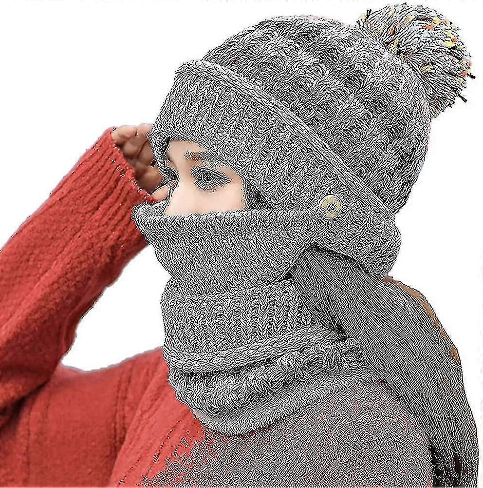 Fleece Lined Women's Beanie Knit Hat Winter Windproof Warm Scarf One Piece Hat Earmuffs Cap Knitted Beanie Hat