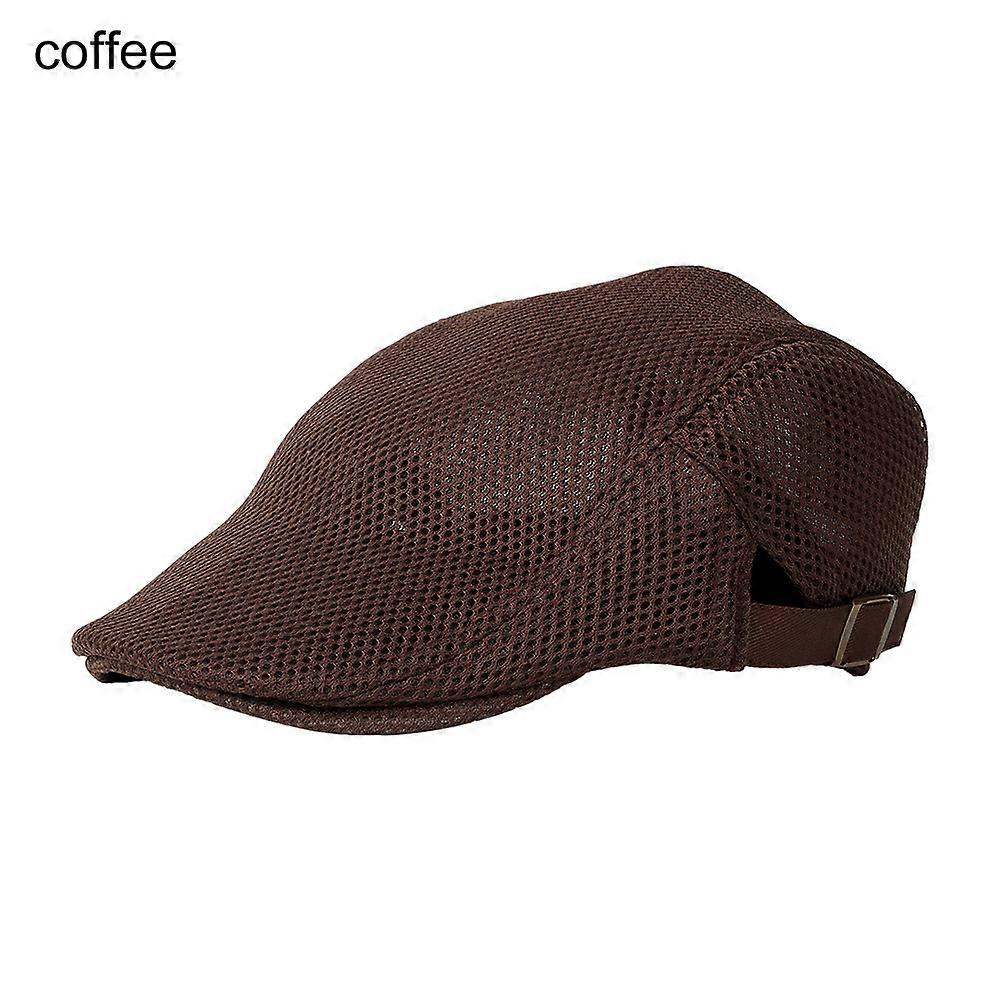Summer Men Breathable Mesh Beret Hat Newsboy Style Peaked Cap Fashion Adjustable Golf Hat Outdoor Solid Color Sunscreen Hat