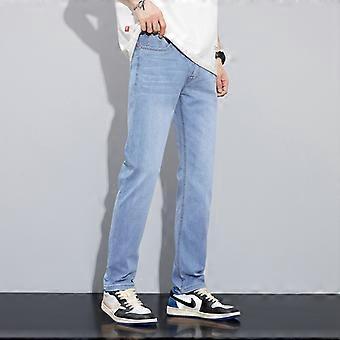 الصيف رقيقة رجالي الجينز المناسب الأعمال عارضة لينة وتنفس أنبوب مستقيم فضفاض جان السراويل الدنيم الأزرق الفاتح