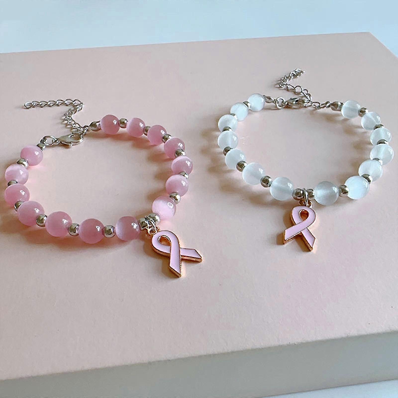 World Aids Drip Oil Pink Ribbon Opal Alloy Bracelets Cold Wind Hip-hop Trend Sweet Temperament Adjustable Jewelry