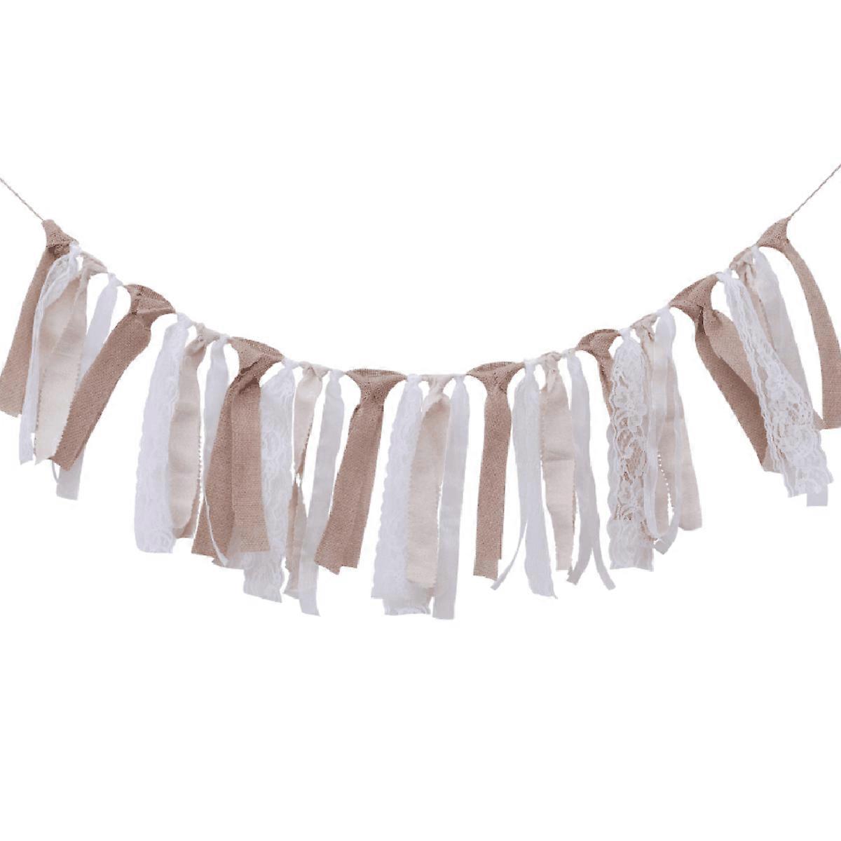Flag Banner Pennant Garland Fabric Rustic Flags Cloth Shabby Chic Decoration for Bedrooms Birthday Wedding Parties (Lace)