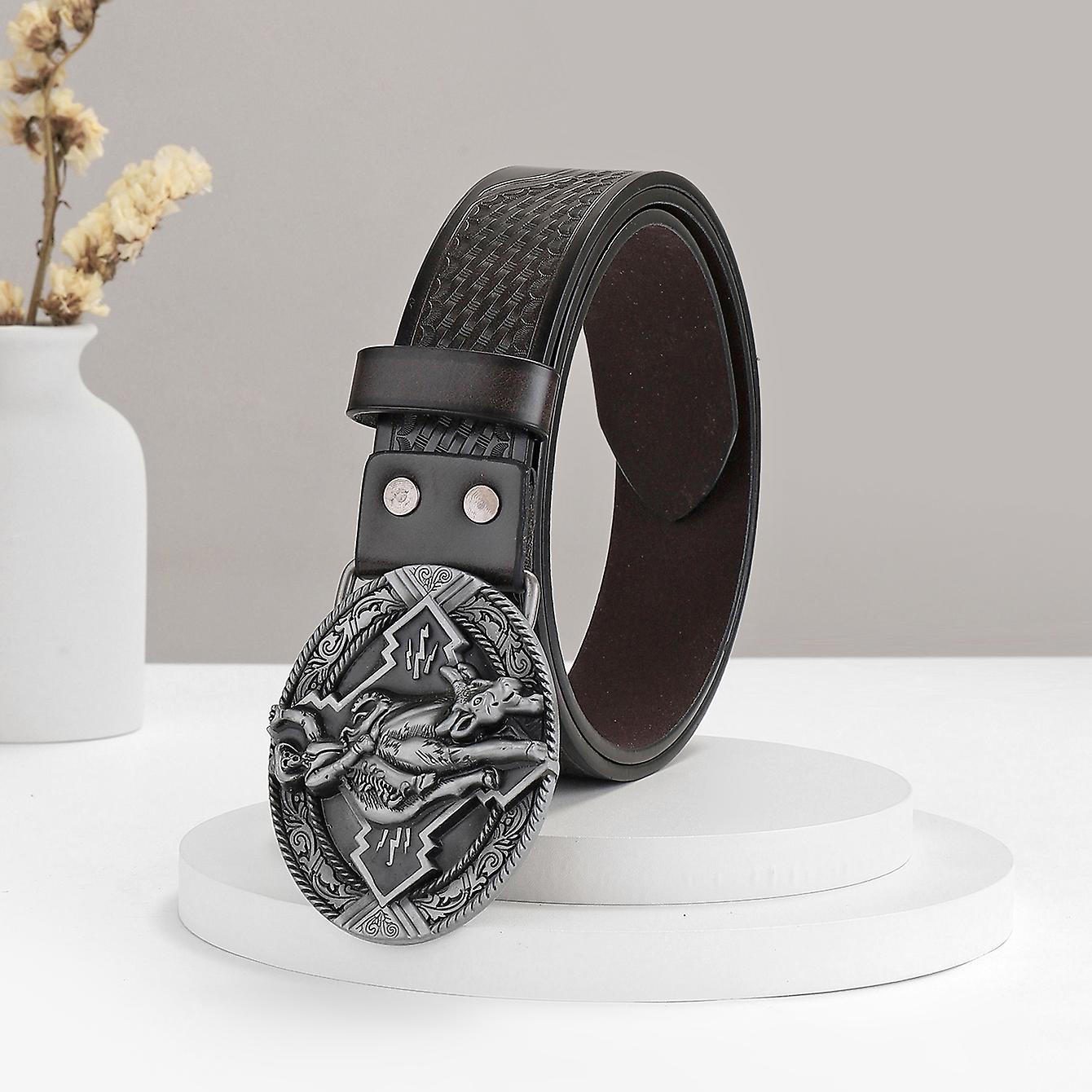 Western Cowboy Vintage Belt Fashion Casual Belt Business Style Men's Embossed Leather Belt