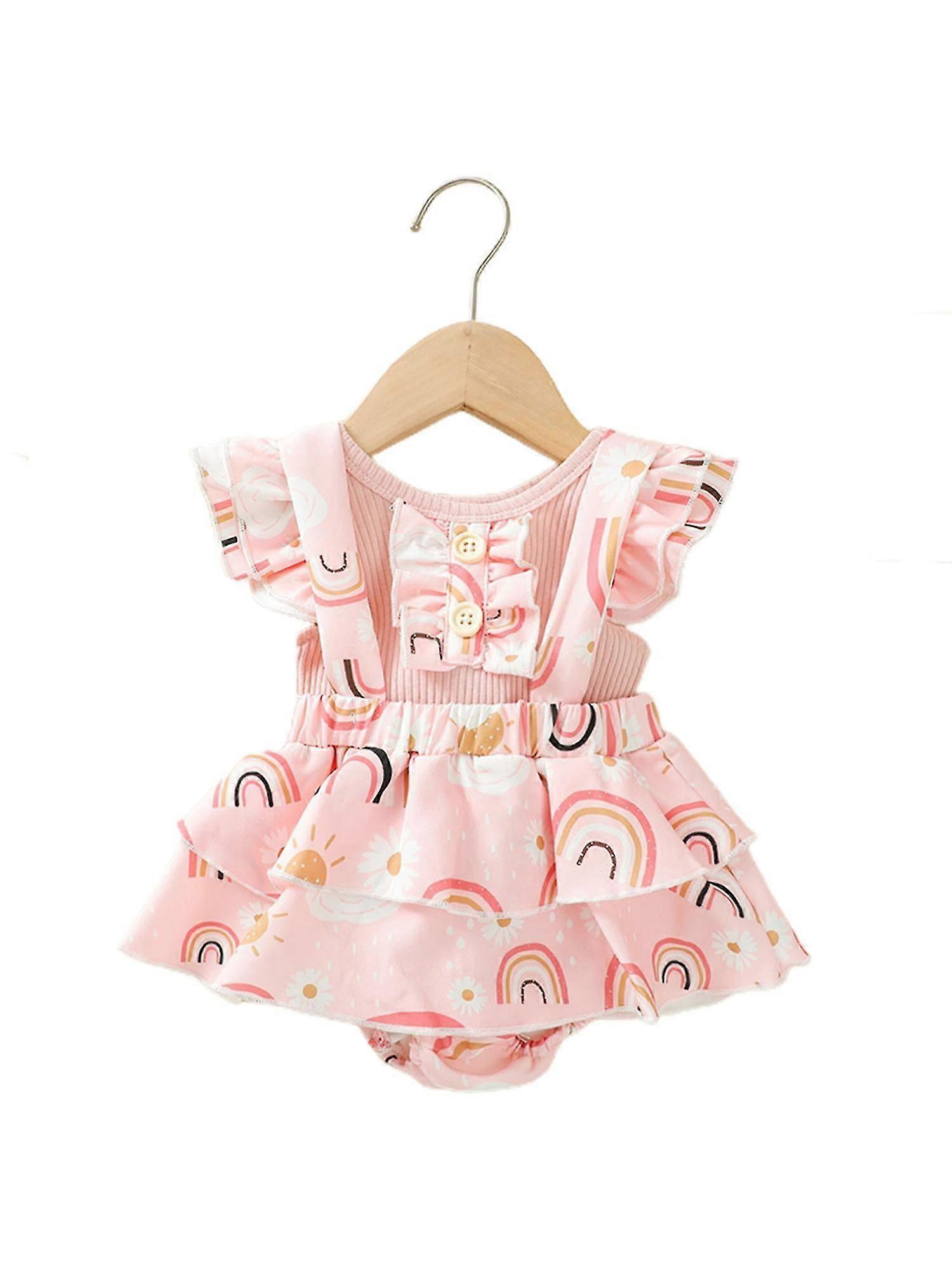 Girls Floral T-shirt Tops Strap Skirt Romper Outfits Newborn Baby Clothes Set