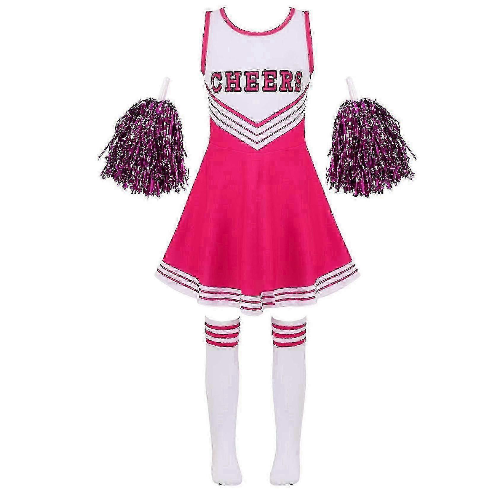 Girls Cheerleading Uniform Dance Costume Kids Cheerleader Outfit Round Neckline Patchwork Style Dance Dress Flower And Socks For Dance Performance