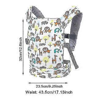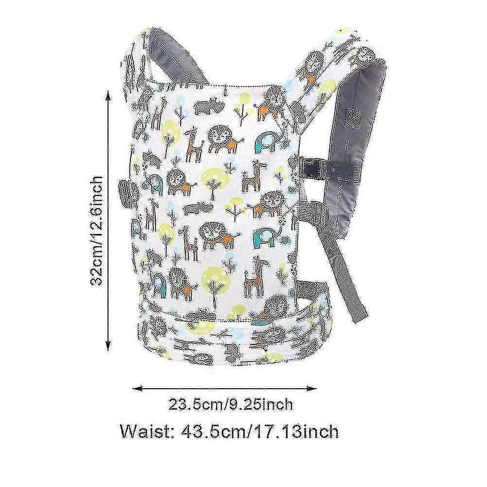 Features: Main Material The doll carrier is made of cotton blend.It& 039;s lightweight, soft and breathable,safe and comfortable for little kids age at 2-6 years old. 3 Carrying WaysThis doll carrier can be worn in 3 ways: Facing-in, facing-out, back carry;With this doll carrier, children can play games, role-playing, and other games. Adjustable Strap All straps for shoulder and waist are adjustable, its convenient for children to place dolls, stuffed animals, plush toys into the doll carrier. Nice GiftThis baby doll carrier lets little ones join in with the carrying fun and it& 039;s a great gift for children. Easter gifts, birthday gifts, homecoming gifts, Christmas gifts, New Year gifts. Attractive DesignSweet color with cute pattern,four design for you choose. This will help cultivate the children& 039;s sense of responsibility and understanding. Specifications: Type: Arrow, Flower, Zoo, Forest Material: Cotton Blend Size(L*W): About 32x23.5cm/12.6x9.25inch, Waist: 43.5cm/17.13inch Age: 2-6 Years Old Package Included: 1pc x Baby Doll Carrier Note: 1. Due to the light and screen difference, the item& 039;s color may be slightly different from the pictures. 2. Please allow 0.5-2 cm differences due to manual measurement. "