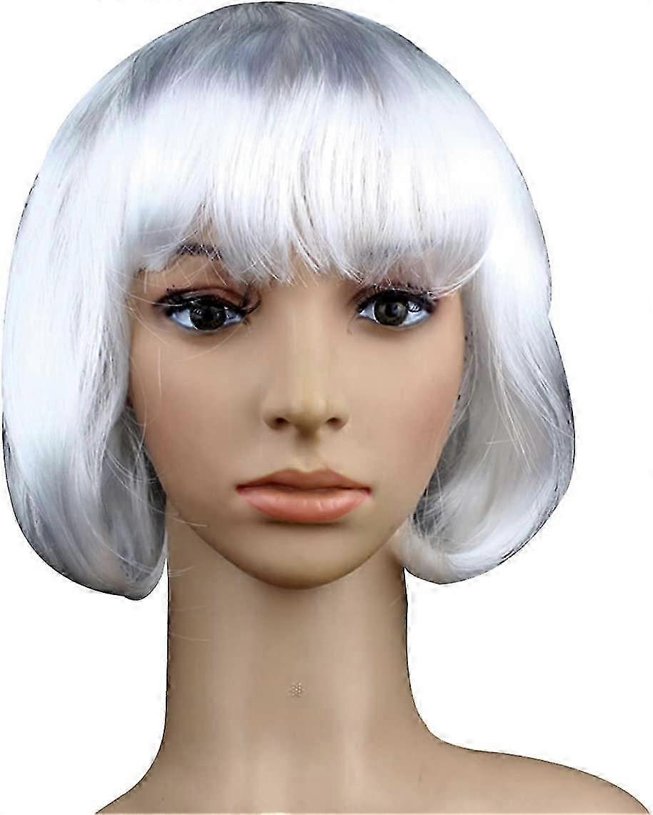 Girls Heat Resistant Fiber Short Straight Wig Party Cosplay Headwear (White)