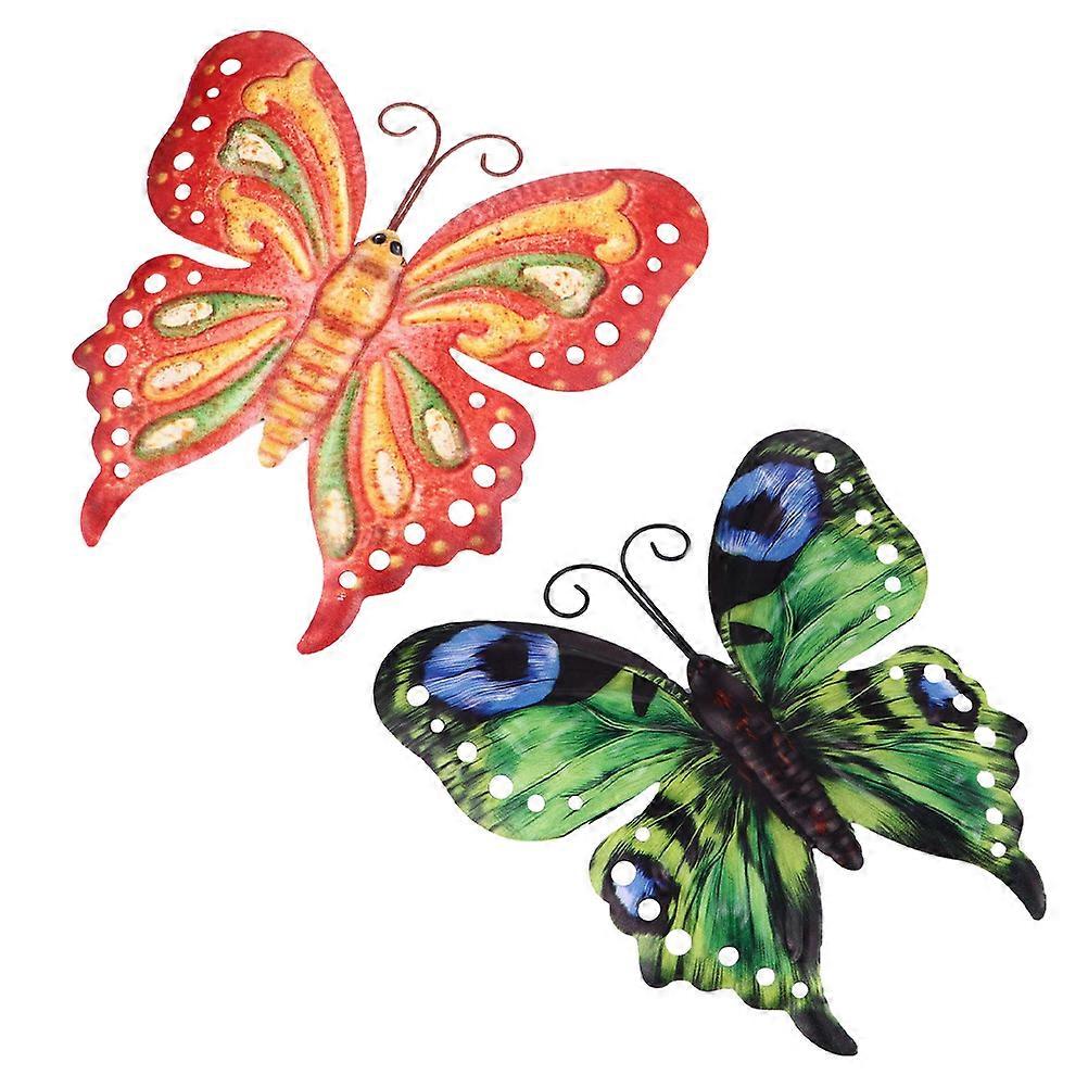 color, no fading. Rustproof, durable for use, not easy to break and deform. Made of crafted metal and carefully varnished process, light weight and decorated with beautiful painting colors. Lovely butterflies shape and fresh color will create more nature and artistic atmosphere. Features -Color: red, green -Material: iron -Size: 20.50X21.00X0.50cm/8.06X8.25X0.20in - Suitable for decorating your garden, living room or office, look charming and unusual. - This is a perfect women who love these pretty insects or for a family that wants to bring a bit of nature indoors. - Wide applications, can be used to decorate birthday, theme party, wedding, celebration, festival, holiday, or just daily life. - Wide uses, perfect for bedroom, kids room, living room, kitchen, garden, patio or fence. - Perfect size, not too big or not too small, easy to install, easily impress your guests. Package list: 2 x ornaments