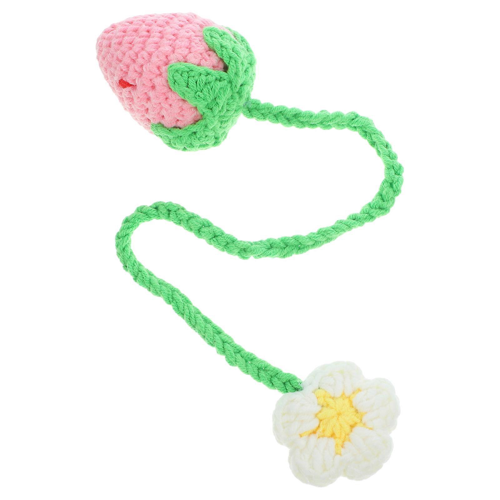 Strawberry Crochet Ornament Car Mirror Charm Accessory Pink 36.00X5.50X4.00CM Rearview Mirror Decoration 2Pcs