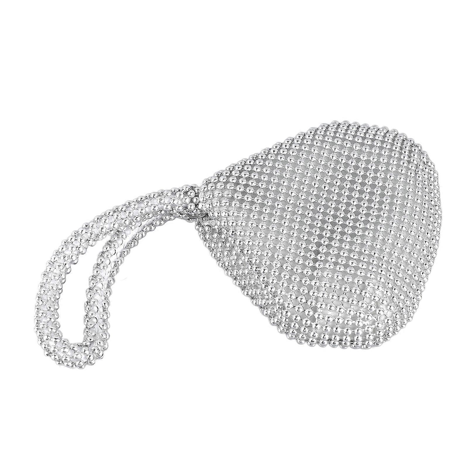Silver Portable Bead Evening Bag Elegant Wedding Party Purse