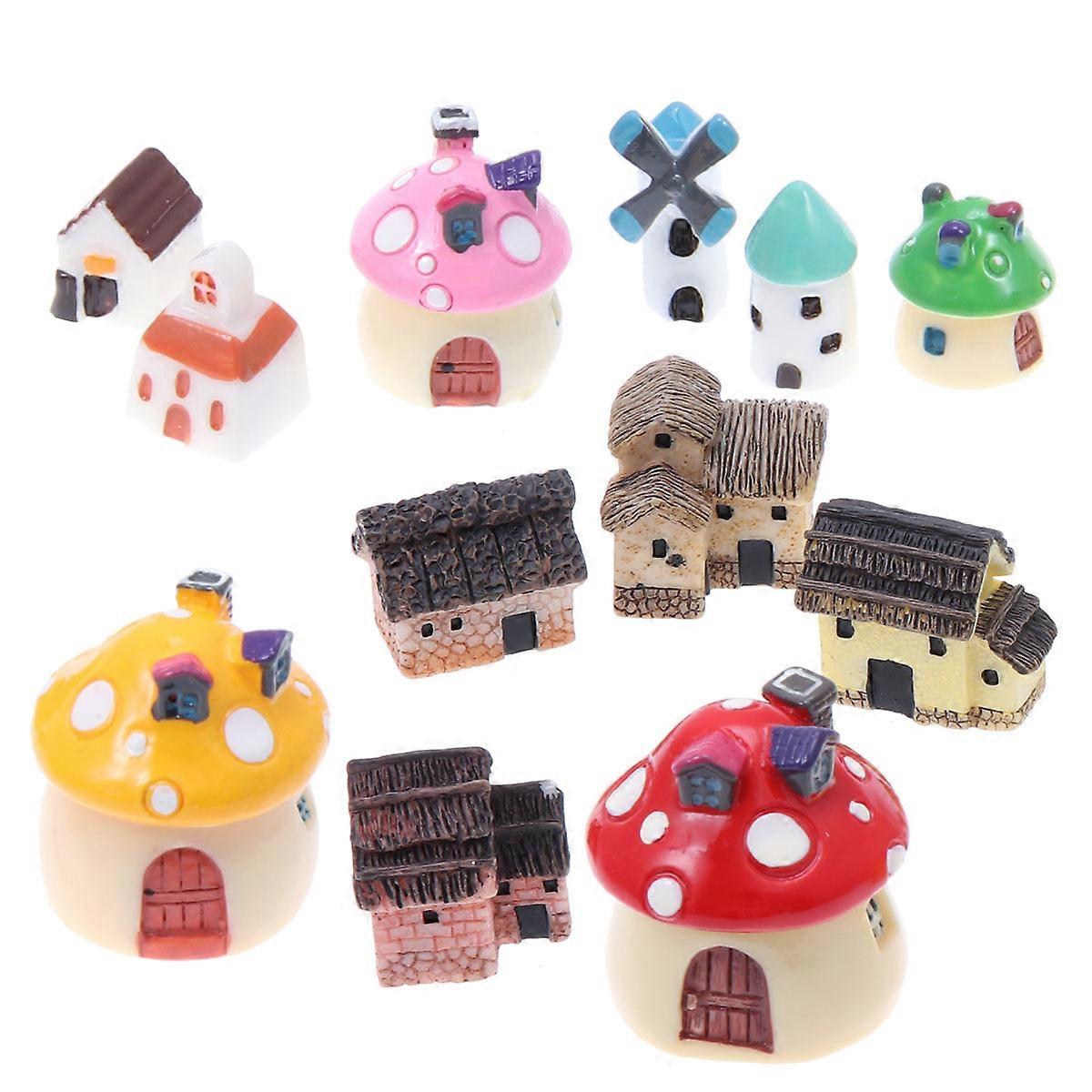 Mushroom House Statue Resin Mini House Castle Cartoon Windmill Mushroom Ornaments For Container Mini Garden 4.5x4.5x3.8 Cm 12Pcs