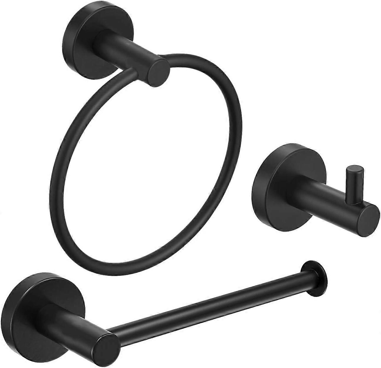 Stainless Steel Bathroom Hardware Set Black 3 Pieces Bathroom Hardware Accessories Sets Wall Mounted Double Towel Ring Towel Holder Hook Toilet Paper