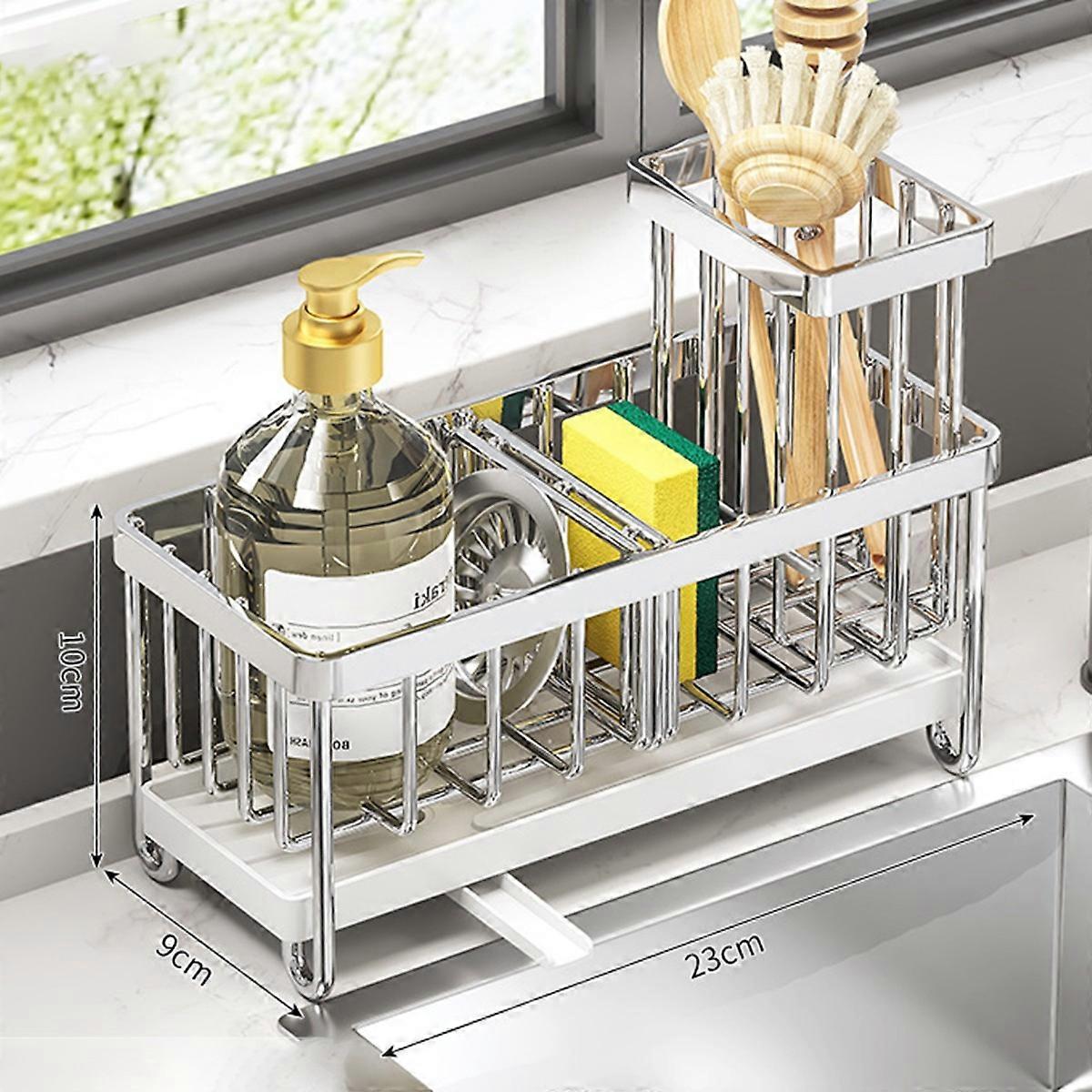 Stainless Steel Sink Caddy Sponge Holder Kitchen Cleaning Tool Organizer Dish Cloth Rack with Rod