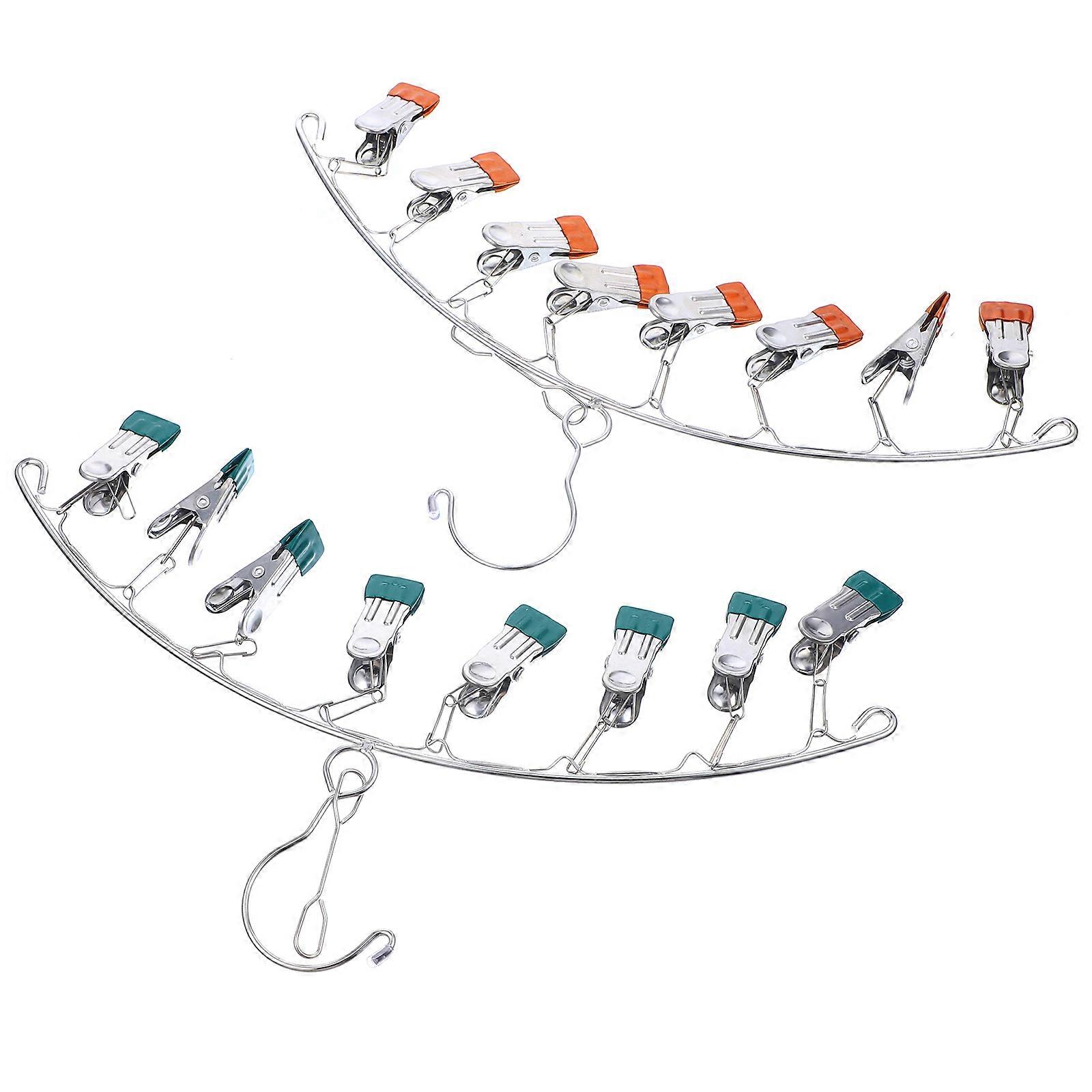 Stainless Steel Sock Clip Hanger with 2pcs Drip Clips for Clothes Drying Rack Laundry Accessories