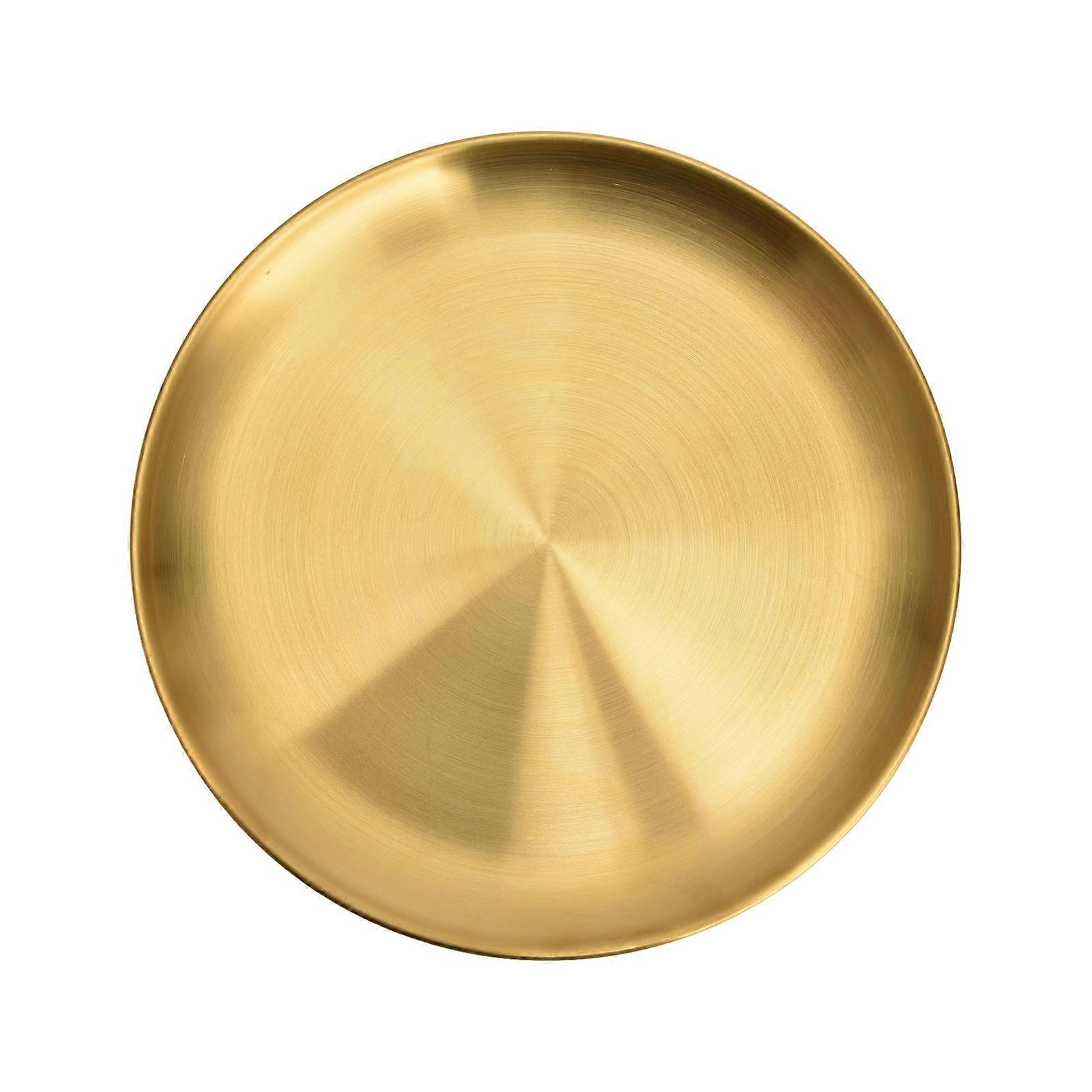 Stainless Steel Round Tray, Round Gold Tray Serving Dishes Barbecue Plate Thickened Round Plate Golden Dessert Plate for Kitchen Home