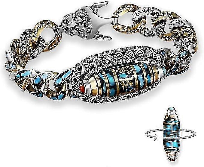 Turquoise Six-character Mantra Nine-eyed Dzi Bead Bracelet, Rotating Nine Dzi Beads Bracelet, Bracelet