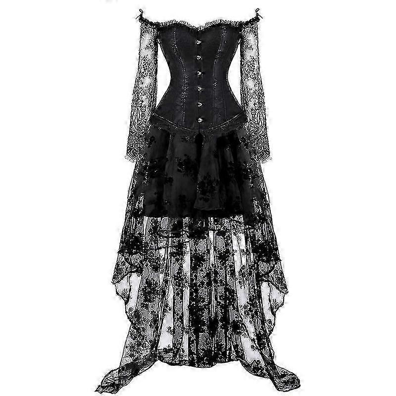 Victorian Corset Dress Set Sexy Corset Top Lace Skirt For Clubwear Women Gothic Costume Burlesque Corselet