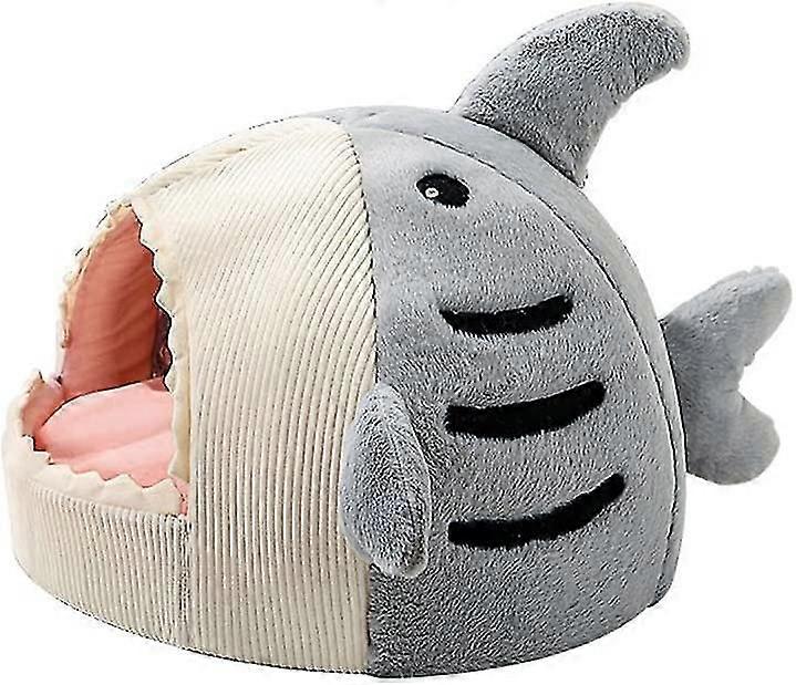 Shark Cat House Cute Pet Cat Bed Warm Soft Cat Nest Dog Litter Kitten Cave Litter Washable Cat Recliner Sofa Bed Comfortable Four Seasons (grey,m)