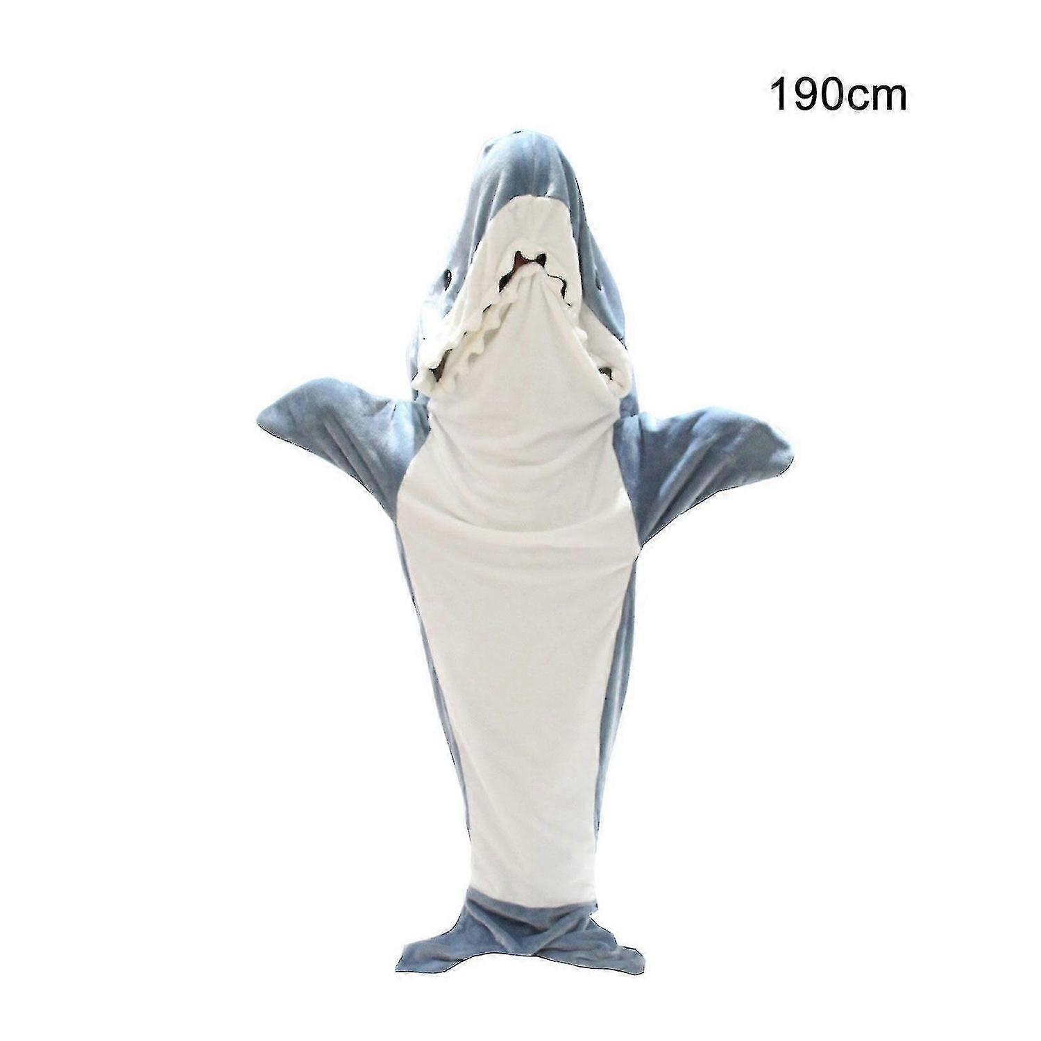 Features<br> 1. This wearable shark blanket compared with ordinary tail blanket. You can put your head and arms into it, so that the whole body can feel the warmth of the blanket,you can also put your hands outside get released.<br> 2. Compared with ordinary wearable blanket, shark blanket can wrap legs and feet. The distinct shark shape, realistic print and classic colors will help your get into character every time they wear it.<br> 3. Premium Materials: We shark blanket, made with the softest flannel fleece fabric(100% polyester). Super soft, comfortable and lightweight,warm and durable.Not only can be used as a sleeping bag, but also as a onesie suit.Shark outfit can be reclined on the couch or snuggled in the bed.<br> 4. It is hand washable or gentle machine wash. If you are looking for cool gifts, Shark Blanket for shark lovers look no further.<br> 5. Multi Purpose: Animal blankets can be used as movie night, party night, sleepovers, camping trips etc. Can also performances, tiny cosplay, fancy dress,cartoon pajama party, dressing up, cosplay costumes, shark costume,loungewear and adult onesie.<br> Specification<br> Material: Flannel<br> Color: Blue<br> Size: 170 cm, 190 cm, 210 cm<br> Weight: 630 g, 750 g, 880 g<br> Package Include:<br> 1x Hoodie