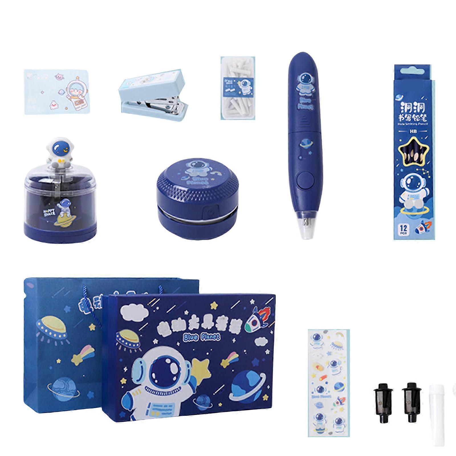 Electric Stationeries Electric Eraser with Refills Electric Pencil Sharpener Wood Pencil Stapler For Student School Multicolor