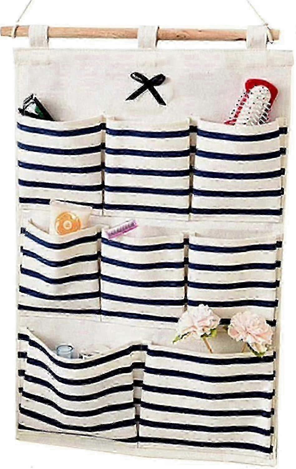Cotton Linen Hanging Shelf Organizer, Over The Door Closet Organizer With 8 Pockets