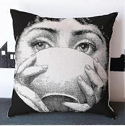 Cotton Square Throw Pillow Case Cushion Cover Throw Pillow Shell Pillowcase for Sofa Fornasetti faceTea cup Tea (45cmx45cm)
