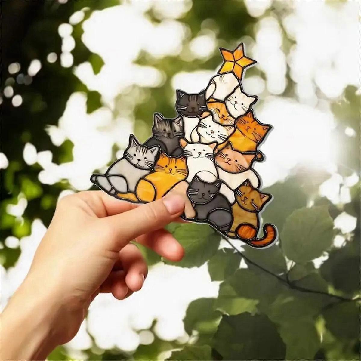 Cat Sun Catcher Acrylic Stacking Kitten Ornaments Colorful Decoration Christmas Car Home Decoration