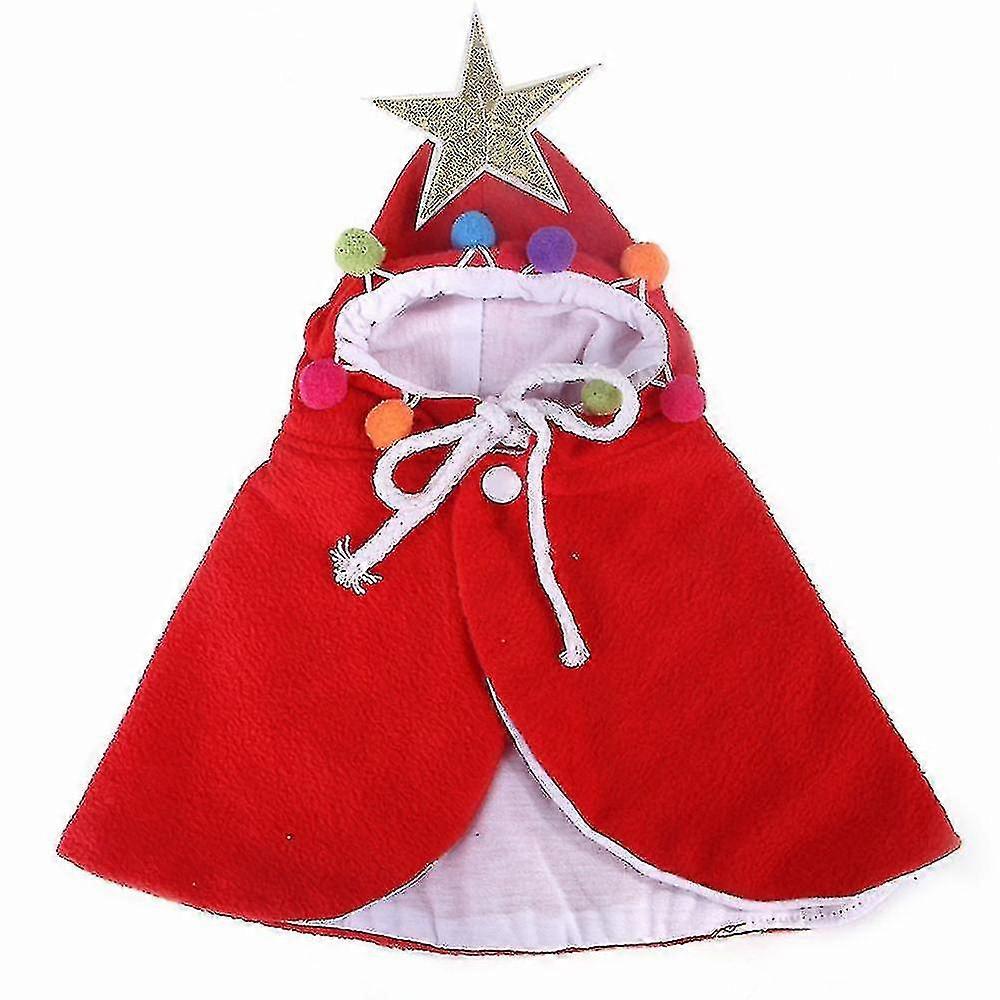 Cat Dog Christmas Costume - Xmas Cloak With Star And Pompoms Pet Santa Cape With Santa Hat Party Cosplay Dressing Up For Cats And Small Medium Dogs Ch