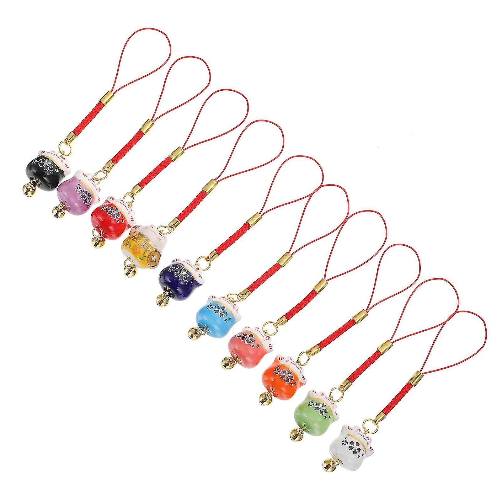 Lucky Cat Hanging Charm Phone Decoration Assorted Color 10x2cm Ceramic Pendant Style 10Pcs