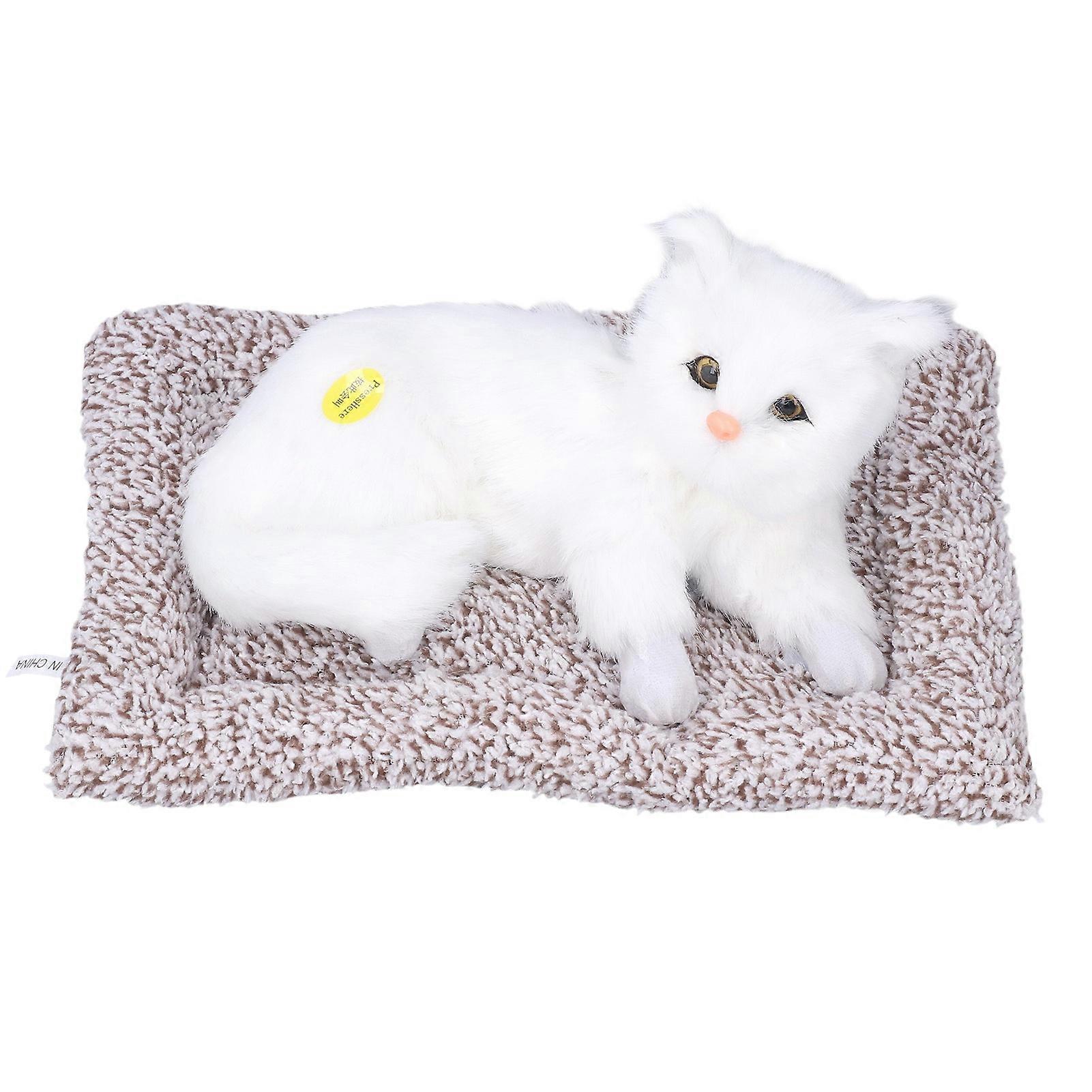 Cat Ornament Simulation Design Vivid Cute Plush Lying Cat with Activated Carbon for Car Home DecorationWhite
