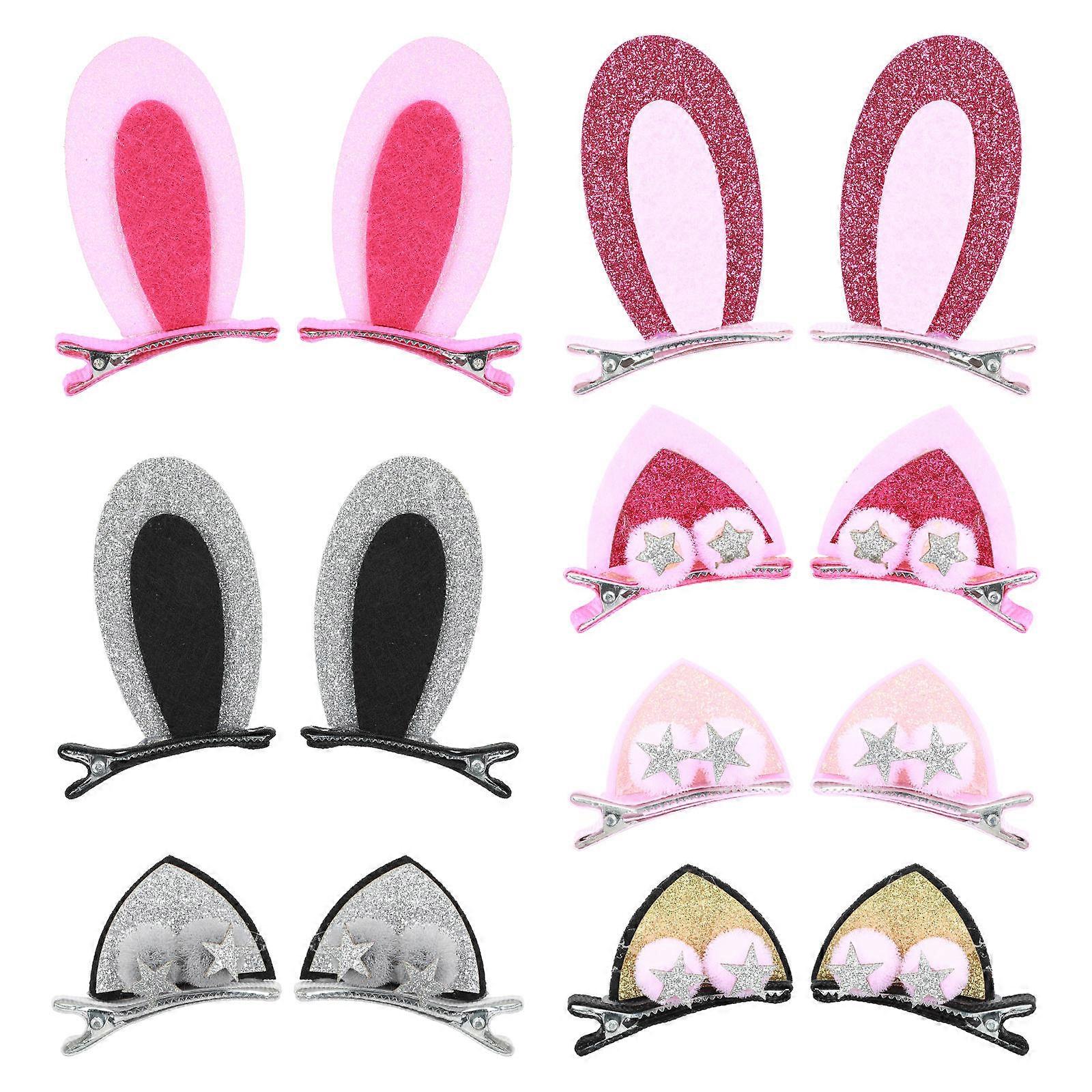 Cat Shaped Hair Clip Kids Hair Clips Celebration Accessory Cotton Material Birthday Accessory Animal Ears Shape 7 pairs