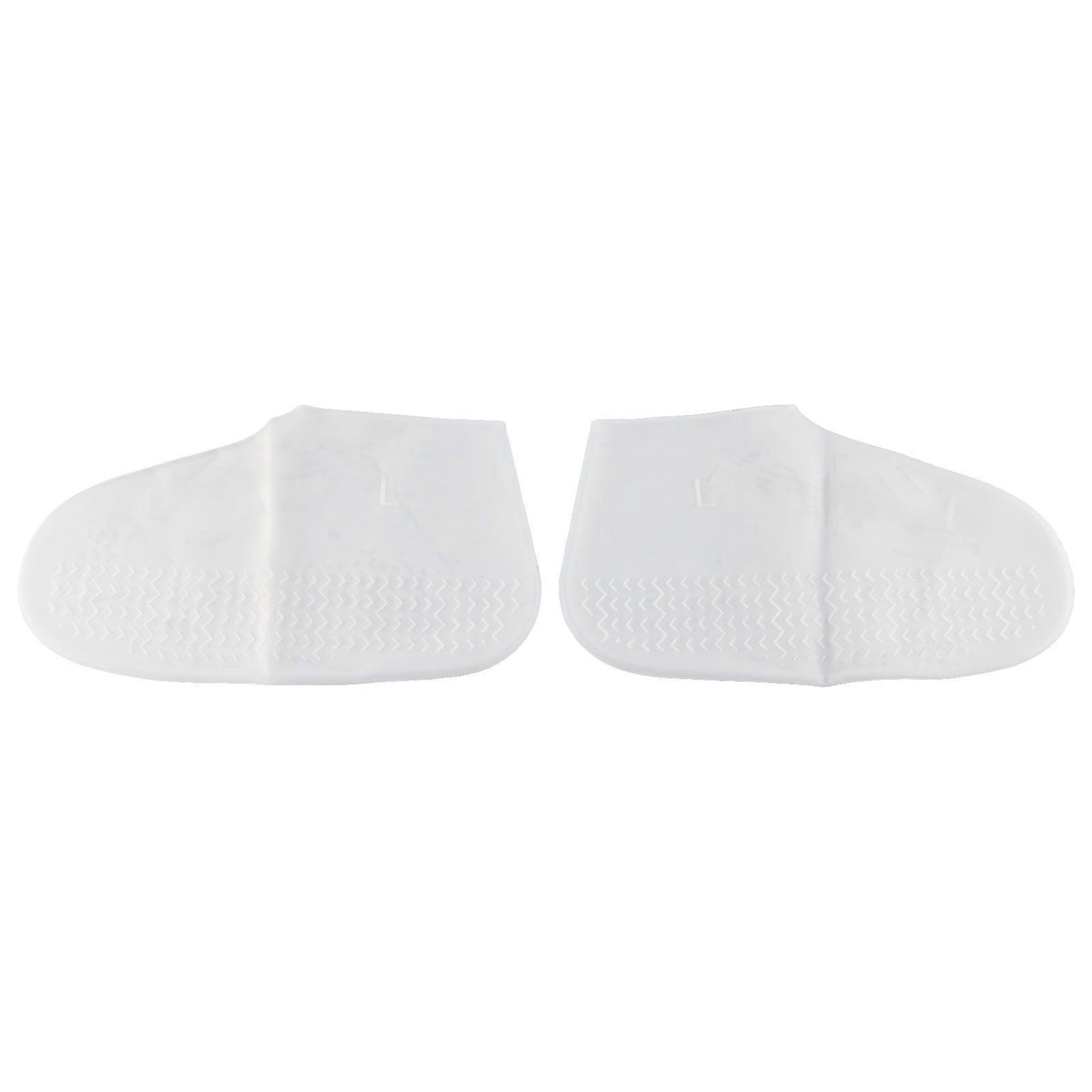 Adult Elastic Silicone White Overshoes Rain Waterproof Shoe Covers Anti Slip Protector(L)