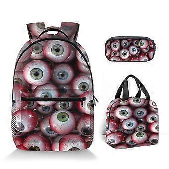 Graffiti Skull Printed Backpack Student Polyester Cartoon Children's Backpack Three-Piece Set