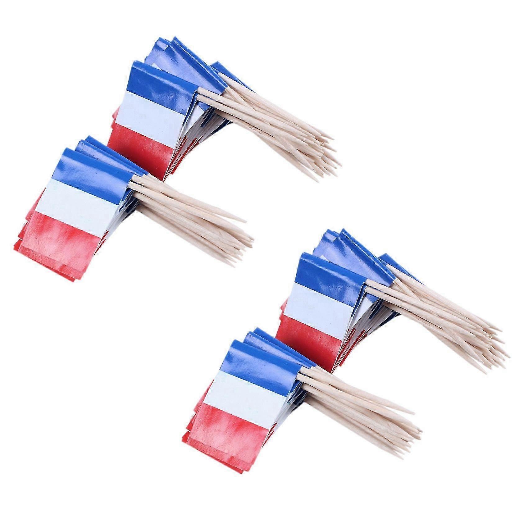 Lot of 100 Pcs Mini Wooden Toothpick with Flag for Decor of Party Fruit Pastry - France (Blue, White