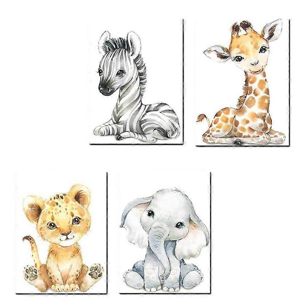 Cartoon Animal Decoration Painting Frameless Canvas Painting for Decoration 4Pcs