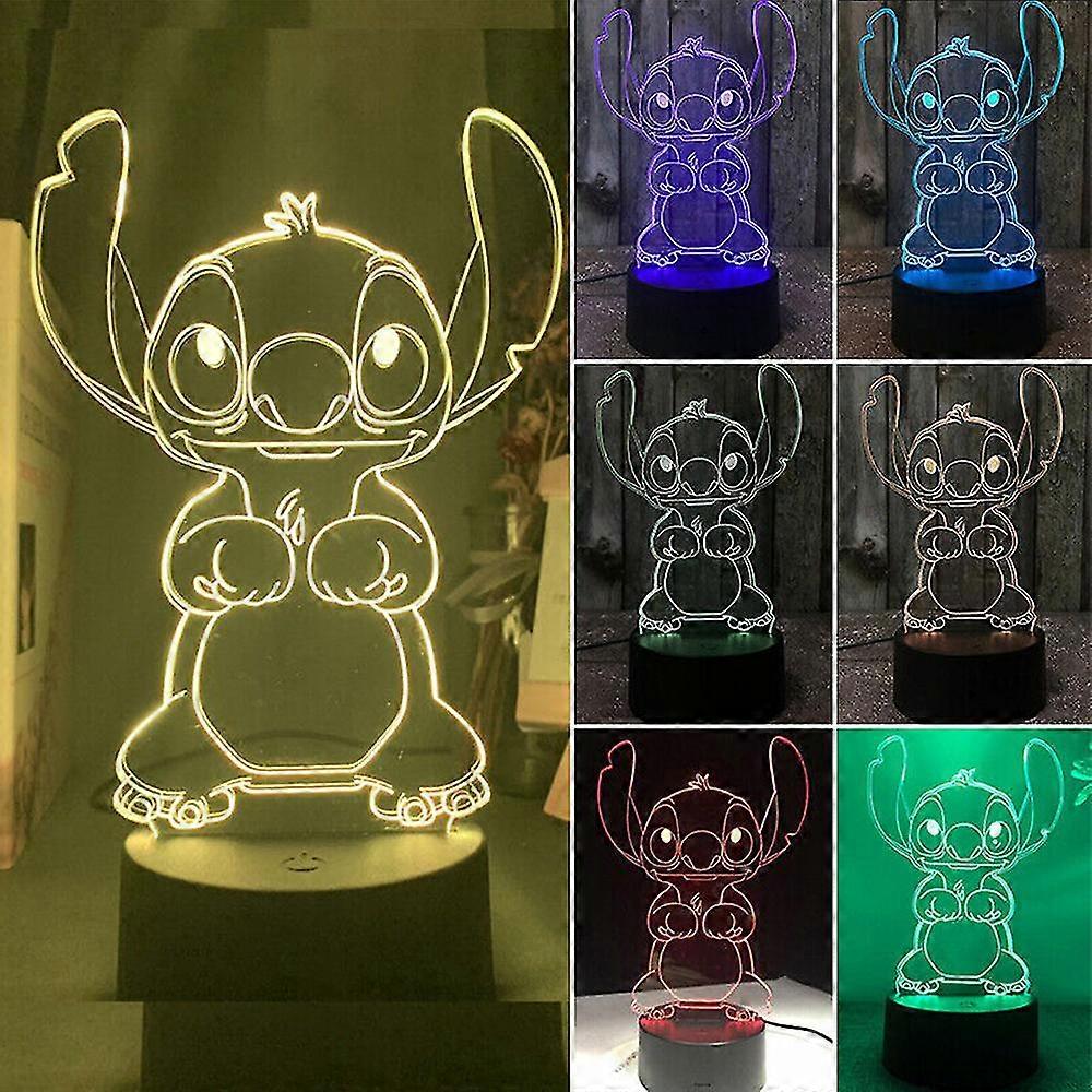 Cartoon Stitch 3d Illusion Led Night Light Bedside Lamp 7 Colors Change Kids Birthday Gift