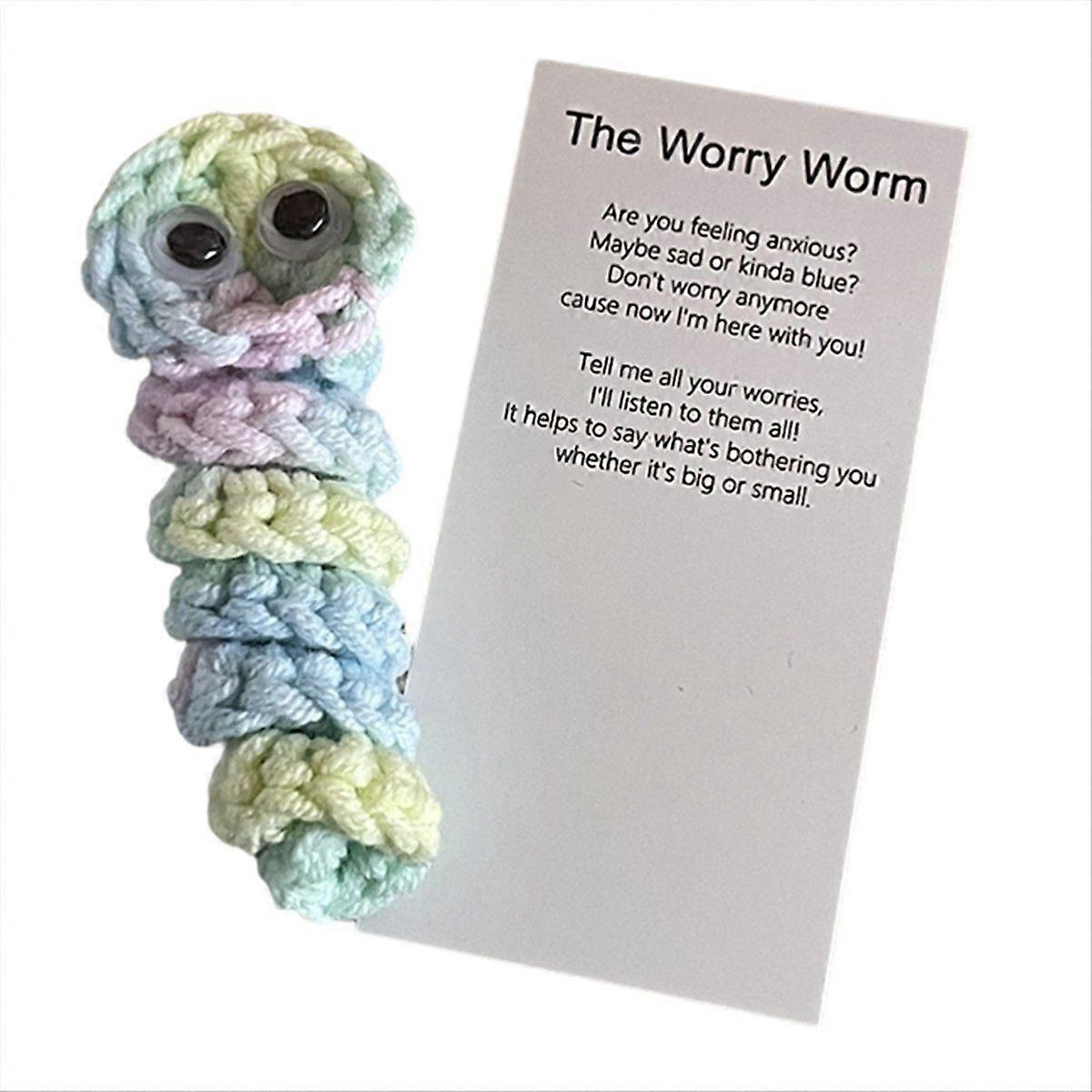 Crochet Worry Worm Inspirational Cares For You, Cute Knitted Gift C