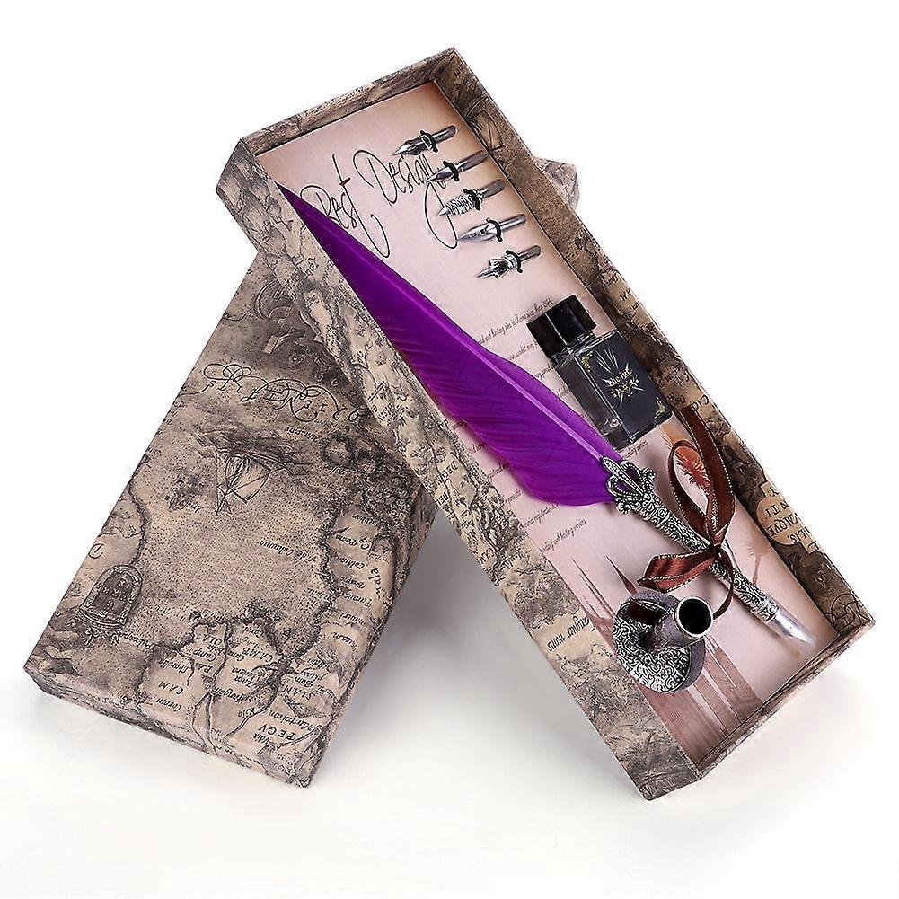 Classical Retro Fountain Pen Feather Dip Pen Writing Pen Christmas Valentine Gift Box Purple