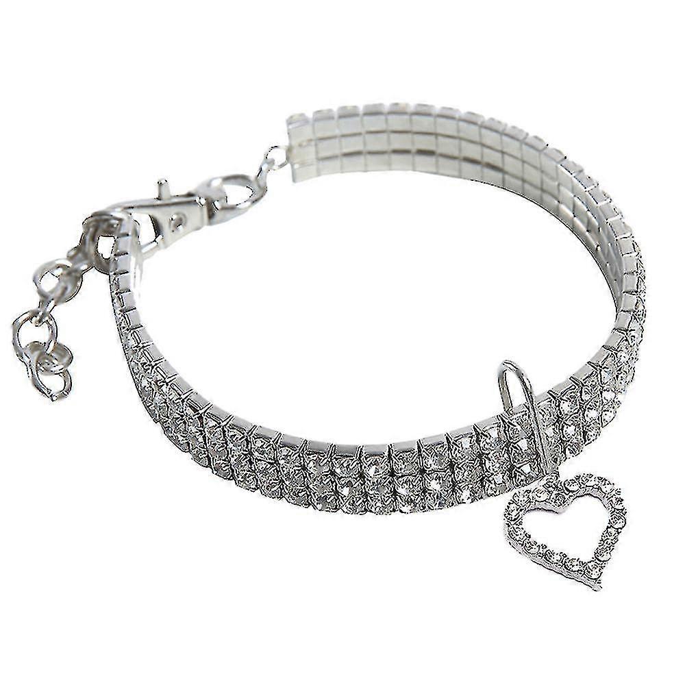 Dog Kingdom Pet Cute Full Rhinestone Collar Dog Sparkly Heart Shaped Diamond Necklace