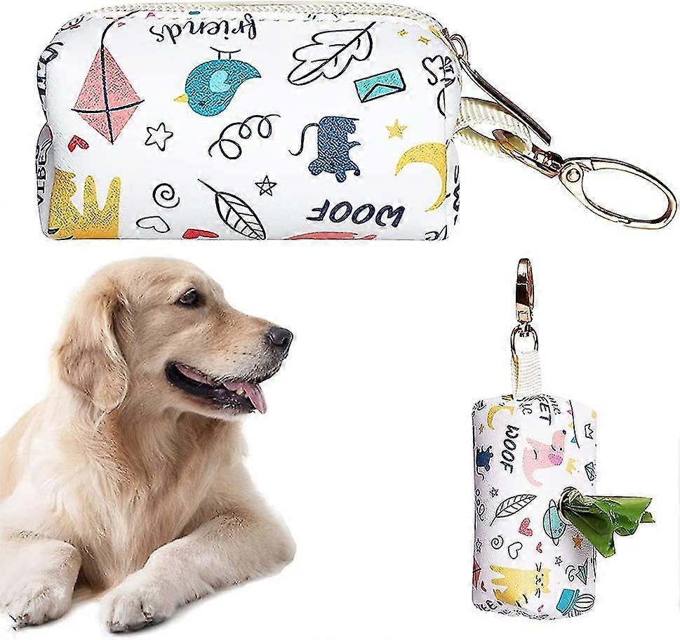 Dog Poop Bag Dispenser,pet Poop Bag Holder, Portable Pu Leather Dog Poop Bag Holder(white)