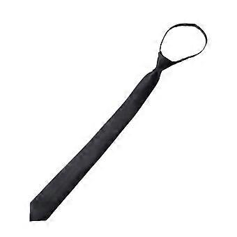 Korean Preppy Style Men Women Black Necktie with Adjustable Zipper Pre-Tied Solid Color Narrow Tie for Formal Wedding Graduation School Uniforms
