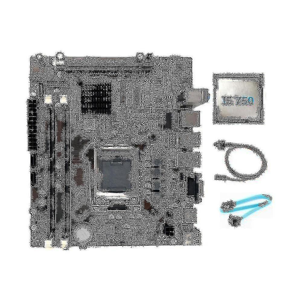 CPU socket type: LGA 1156Innovative design, reduce intermediate transmission links, reduce costs, reduce signal attenuation, and make continuous long-term work more stable.Solid Capacitors The performance of solid capacitors is stable, which greatly prolongs the service life of the motherboard.This product uses high-quality materials, is durable, has a long service life, and is and stable in use.Plug and play, convenient and -free.Support CPU type: 1156-pin I3 I5 I7 CPUOnboard network card: with onboard network cardSupport graphics standard: PCI 16XSupport memory type: DDR3Note: The appearance and color of different batches of products are slightly different, which does not affect the use.Type: MotherboardMotherboard architecture: MicroATXChipset Series: H55 Chipsetcolor:BlackMaterial:PCBsize:17 x 19CMPackage Contents:1 x Motherboard1 x I5 750 CPU1 x Switch Cable(Appearance and color are random, cannot the specified appearance and color)1 x SATA Cable(Appearance and color are random, cannot the specified appearance and color)Only the above package content, other products are not included.Note: Light reflection and different displays may cause the color of the item in the a little different from the real thing. The measurement allowed error is +/- 1-3cm.
