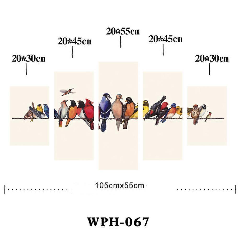 Oil Painting 5 Panels Combination Birds on Clothesline Frameless for Wall