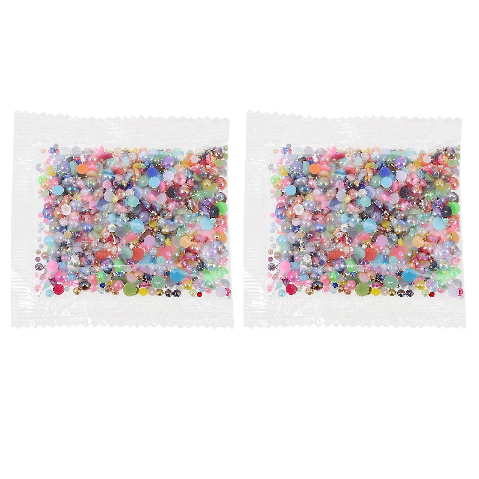 Pearl Loose Beads Plastic Semicircle Shaped DIY Craft Ornaments 2Packs