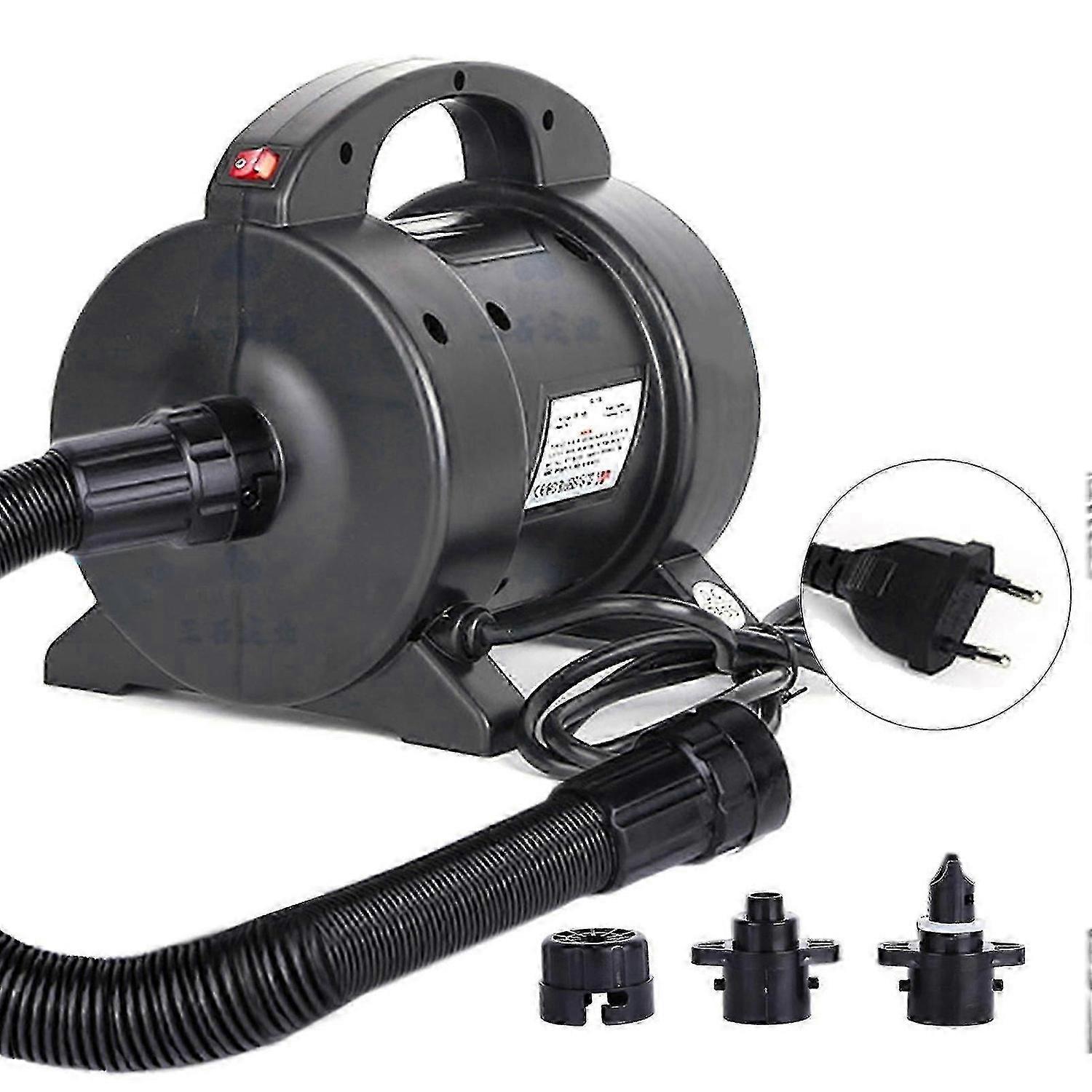 This electric air pump with 1600W super b power for quick inflation and deflation. It is a great device for airbed, inflatable boat/raft/pool, and other inflatables.<br> Note:<br> 1. The power supply should be AC110-240V.<br> 2. Keep this electric pump out of children's reach.<br> 3. To make sure the pump work normally, do not block the inflation and deflation ports.<br> 4. Choose the proper nozzle according to the size of the inflating valve.<br> Specifications:<br> Material: ABS<br> Power: 1600W<br> Max. Pressure: 4.0psi<br> Airflow: 4800-5000L/min<br> Voltage: 110V-120V/220V-240V<br> Frequency: 50-60Hz<br> Current: 5A<br> Power Cable Length: 2m / 6.6ft<br> Hose Length: 0.4m / 15.7in<br> Dimension: 25.5 * 17 * 20cm / 10 * 6.7 * 7.9in<br> Weight: Approx. 2.67kg / 5.9lb<br> Package List:<br> 1 * Electric Pump<br> 1 * Inflation Hose<br> 2 * Nozzle<br> 1 * User Manual